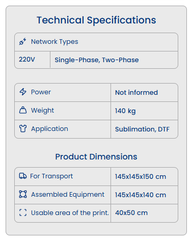 Discover the 50 Rotary Pneumatic Press, the ideal solution for people with special needs and for those seeking versatility in their applications. Work comfortably and efficiently, whether for open or closed t-shirts. With 3 dressing stations for high production and activation via button or pedal, it’s perfect for fabrics, glass, ceramics, tiles, mouse pads, and more. Transform your projects with ease and precision. Get yours now and take your creativity to new heights!